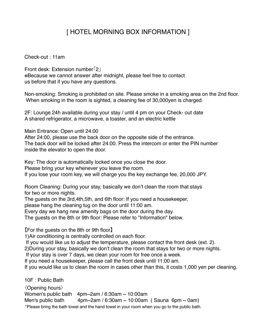HOTEL MORNING BOX Information